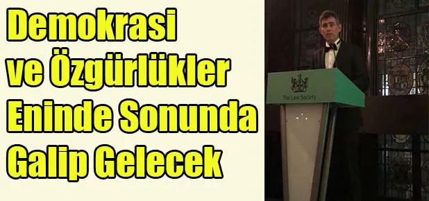 Londra'da gerçekleştirilen İngiltere ve Galler yeni adli yıl açılış törenine resmi davetli olarak katılan Türkiye Barolar Birliği Başkanı Av. Prof. Dr. Metin Feyzioğlu yaptığı konuşmada, Türkiye'de durumun dışarıdan gösterilmek istendiği gibi trajik ya da içeriden bazı çevrelerin göstermek istediği gibi sorunsuz da olmadığını söyledi. Türkiye ve dünyada demokratik kurumların aşınmaya başladığına dikkat çeken Feyzioğlu, "Demokrasi ve özgürlükler eninde sonunda galip gelecek" dedi.