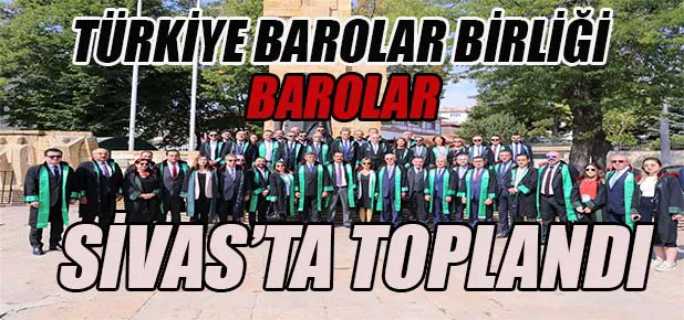 Türkiye Barolar Birliği Yönetim Kurulu üyeleri ve Türkiye’nin dört bir yanından gelen 24 ilin baro başkanları Sivas’ta toplandı. Toplantıya Aksaray, Amasya, Ankara, Bartın, Çorum, Elazığ, Erzincan, Erzurum, Eskişehir, Giresun, Gümüşhane-Bayburt, Isparta, Kahramanmaraş, Karabük, Karaman, Kayseri, Kırıkkale, Kırşehir, Konya, Nevşehir, Ordu, Samsun, Tokat ve Yozgat Baro Başkanları katıldı.