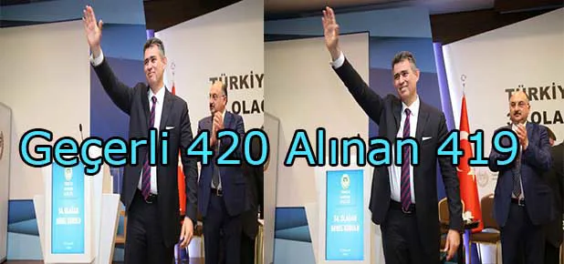 Kesin olmayan sonuçlara göre geçerli 420 oyun 419'unu alan Av.Metin Feyzioğlu, yeniden TBB'nin başkanı oldu.