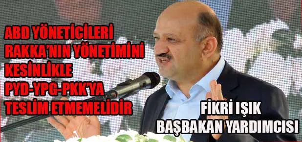 Başbakan Yardımcısı Fikri Işık, ABD'ye "Hâlâ fırsat varken burada tekrar uyarıyoruz; ABD'nin yöneticileri Rakka'nın idaresini kesinlikle PKK-PYD-YPG terör örgütüne teslim etmemelidir. PKK-PYD-YPG terör örgütünün unsurları Rakka'nın yönetiminde asla ve asla görev almamalıdır. Eğer alırsa çok daha büyük sorunların yaşanması mukadderdir" uyarısında bulundu.