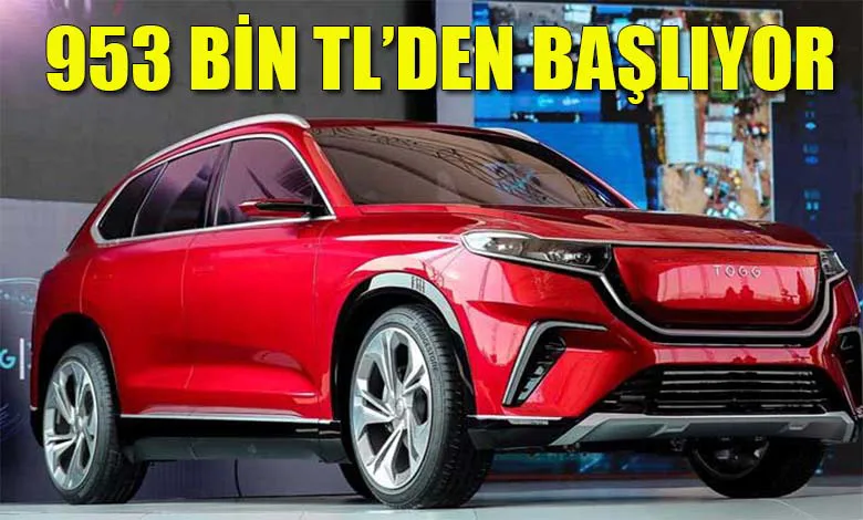 Togg T10X, 953 bin TL’den başlayan fiyatlarla satılmaya başlanacak.