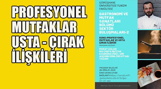 “Gastronomi Söyleşileri”nin 3’üncüsünde Türkiye Aşçılar Federasyonu Başkan Vekili Mustafa Erol 04 Ocak 2021 tarihinde ve son olarak Milliyet Gazetesi Yazarı/Gurme Haldun Tüzel ise 12 Ocak 2021 tarihinde deneyimlerini bizlerle paylaşacak. Söyleşi etkinlikleri akşam Saat: 20.00’de başlayacak olup, tüm halkımıza açıktır.