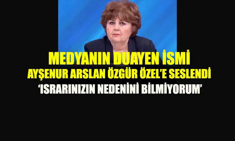 Gazeteci Ayşenur Arslan’da CHP Genel Başkanı Özgür Özel’e seslenirken sosyal medya hesabından dikkat çeken bir paylaşımda bulundu. Arslan paylaşımında, ‘’Sayın Özgür Özel, Lütfü Savaş ısrarınızın nedenini bilmiyorum. “Bir bildiğiniz vardır” diye umuyorum!! Onca tepkiye rağmen adayınız. Peki! Ama hiç değilse susmasını söyler misiniz! Bugün söyledikleri korkunçtu ve emin olun sizi de bağlıyordu’’. ifadelerine yer verdi.