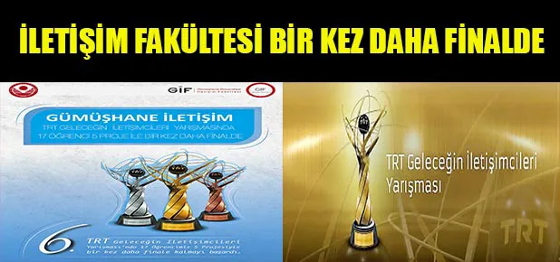 Gümüşhane Üniversitesi İletişim Fakültesi geçen yıl 7 öğrenci ve 4 proje ile finale kaldığı TRT Geleceğin İletişimcileri Yarışması’nda bu yıl da 17 öğrenci ve 5 proje ile bir kez daha finale kalarak, büyük bir başarıya imza attı. Fakültemiz bu yarışmada Televizyon Haberi, Televizyon Programı, Sosyal Medya Projesi ve İnternet Haberi dallarında finale kalma başarısı gösterdi.