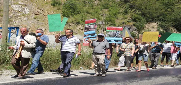 Dereli-Şebinkarahisar kara yolu Kotana mevkisinde bir araya gelen platform üyeleri, kemençe eşliğinde bir süre ellerinde "Su hayattır satılamaz", "Dereler özgür akacak", "Suyumuzu vermiyoruz" yazılı döviz ve afişlerle kara yolu üzerinde yürüdü.