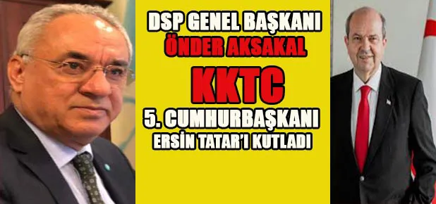 DSP Genel Başkanı Önder Aksakal, Kuzey Kıbrıs Türk Cumhuriyeti Cumhurbaşkanlığına seçilen Ersin Tatar için tebrik mesajı yayınladı.
