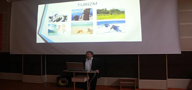 GŞÜ Turizm Fakültesi seminer etkinlikleri kapsamında düzenlenen programda, Turizm İşletmeciliği Bölüm Başkanı Yrd. Doç. Dr. İsmail Çalık, turizm, sürdürülebilir turizm, helal ve helal turizm kavramları ile helal turizm uygulamaları hakkında bilgi verdi.