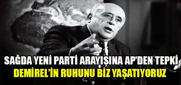 ‘Demirel’in ruhunu yaşatmak isteniyor ve sağda bir oluşum adına bir eylem yapılacaksa zaten üç yıldır ayakta olan Adalet Partisi buradadır. Bu davaya gönül verenleri de davet ediyorum. İsterdik ki bu yola başvuran değerli büyüklerimiz ve arkadaşlarımız bu gerçeği yabana atmasınlar. Adalet Partisi kadroları bu amaç doğrultusunda her geçen gün emin adımlarla ilerlerken kuşkusuz bu arayış amacı saptıracaktır. Bugün gırtlağına kadar soruna saplanmış ülkenin dertlerine kafa yormak varken ve AP’si bu hedef doğrultusunda yeniden siyaset sahnesine merhaba demişken perde arkasında yaşanan tüm olup bitenleri kamuoyunun sağduyusuna ve takdirine bırakıyorum’ diye konuştu.