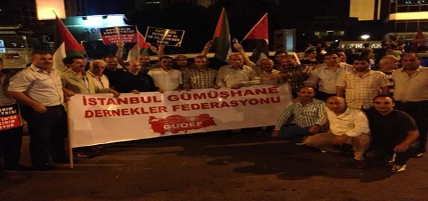Gümüşhane Dernekler Federasyonu İsrail’in Gazze’ye düzenlediği saldırıları kınadı.Levent’te bulunan Konsolosluk önünde bir araya gelen Federasyon yönetim kurulu ve vatandaşlar ellerindeki çeşitli döviz ve pankartlar eşliğinde slogan attılar