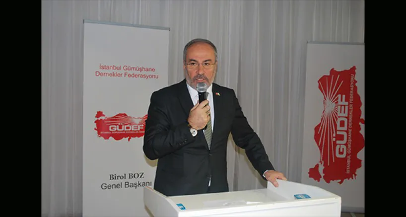 ‘’Yine bugün toplanma sebebimiz 11. Kültür buluşmaları organizasyonu. Öncelikle biz bütün hazırlıklarımızı yaptık. İnşallah sizleri 5-6-7-8 Aralık olmak üzere Yenikapı’da görmek istiyoruz. Sadece sizleri değil köy derneklerimizi köydeki vatandaşlarımızı, İstanbul’da yaşayan vatandaşlarımızı bütün hemşerilerimizi görmek istiyoruz. O hazırlıkları yaparken şunu da yaptık bilmenizi isteriz. Bir köy dernek, il dernek başkanları olarak biz bir organizasyon firmasına vermedik, Gümüşhaneli esnaflarımızı sizlerle buluşturmak için Gümüşhane ürünlerini sizlerle buluşturmak için hem de hasbihâl edebilmek gerçekten İstanbul’da yaşayan hemşerilerimiz sizleri özlüyor, değerli başkanlarım belediye başkanlarım sizler belki zorlu süreçte bütün süreçleri zorlayarak buraya geliyorsunuz ama buradaki hemşerilerimizde gerçekten İstanbul’da yaşayan hemşerilerimiz memleketlerinden gelen hemşerilerimiz var o hasreti buradaki Yenikapı günleriyle sizlerle buluşup bu hasreti gidermek istiyoruz. Yöresel ürünlere keza yine aynı, bizim oradaki esnaflarımızı koruyarak, kollayarak organizasyon şirketine verip paramızı alıp cebimize kenara oturmasını bilirdik ama elimizi taşın altına koyduk arkadaşlarımızla birlikte üç dört günümüzü yollarda geçerek hem Gümüşhane hem Ankara’da ziyaret ederek tamamladık inşallah 5-6-7-8 Aralık’ta sizlerle buluşturacağız.