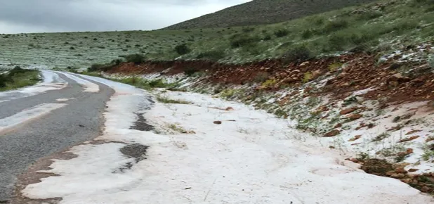 İlçeye bağlı bin 500 metre rakımlı ve 11 kilometre uzaklıktaki Karşıyaka köyünde öğleden sonra gerçekleşen dolu yağışının ardından köy tamamen beyaza bürünürken, bazı yerlerde yol kenarındaki dolu birikintisinin kalınlığı 10 santimetreye ulaştı.