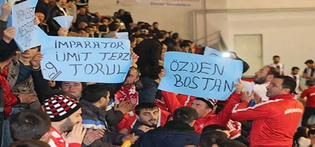 Kapalı spor salonunun tribünlerini dolduran onlarca Gümüşhaneli taraftar ligde zor günler yaşayan voleybol takımına destek için tribünde yerini aldı.