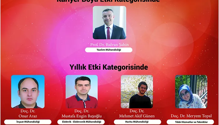 Yıllık Etki: Doç. Dr. Onur Araz (İnşaat Mühendisliği), Doç. Dr. Mustafa Engin Başoğlu (Elektrik - Elektronik Mühendisliği), Doç. Dr. Mehmet Akif Günen (Harita Mühendisliği), Doç. Dr. Meryem Topal (Gümüşhane Sağlık Hizmetleri MYO)