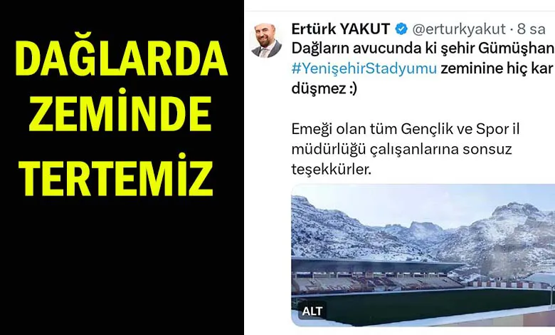 ‘’Dağların avucunda ki şehir Gümüşhane'de #YenişehirStadyumu zeminine hiç kar düşmez :)
