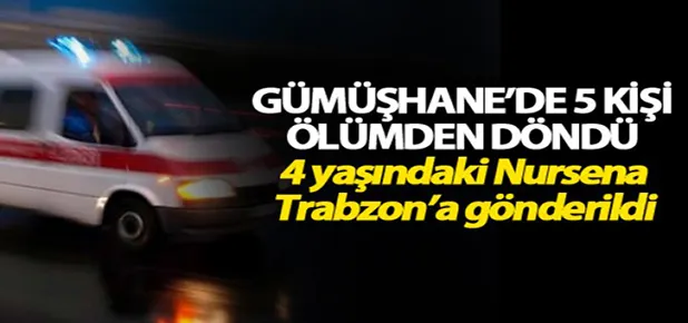 Topladıkları mantarları yiyen 5 kişi zehirlenerek hastaneye kaldırıldı. Gümüşhane'de topladıkları mantarlardan yiyen 5 kişi zehirlendi. Alınan bilgiye göre, il merkezine bağlı Süle köyünde yaşayan Halil (69), Hatice (52) ve İbrahim Tüze (54) ile Kübra (28) ve Nursena Doğan (4) topladıkları mantarı yedikten bir süre sonra fenalaştı. Baş dönmesi ve kusma şikayetleriyle Gümüşhane Devlet Hastanesi'ne başvuran 5 kişi, mantar zehirlenmesi teşhisiyle tedavi altına alındı. Bu arada, 4 yaşındaki Nursena Doğan, Gümüşhane'de yapılan müdahalenin ardından Trabzon Karadeniz Teknik Üniversitesi (KTÜ) Farabi Tıp Fakültesi'ne sevk edildi.