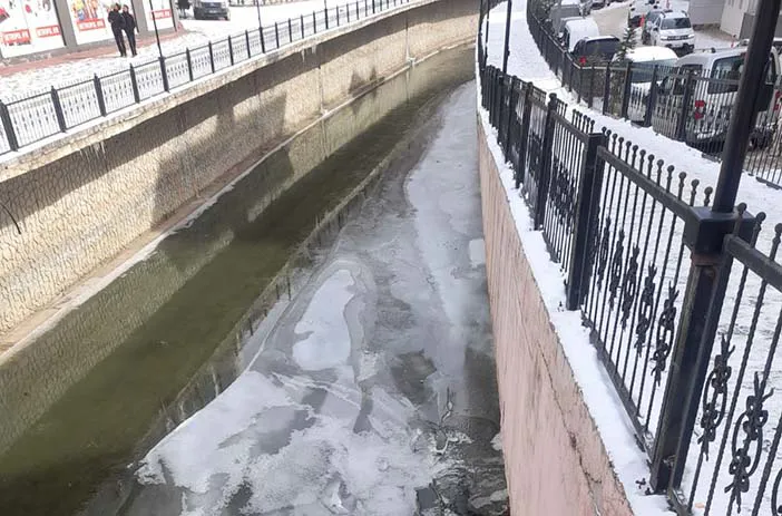 Türkiye’nin en hızlı akan çayı unvanına sahip Harşit Çayı, hava sıcaklığının -16 derecelere kadar düşmesiyle Torul ilçe merkezinde buz tuttu. Sabah saatlerinden itibaren etkili olan kar yağışı, çayın donmuş yüzeyini beyaz bir örtüyle kapladı.