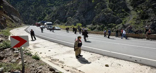 Heyelanın ardından sabahın ilk ışıklarıyla birlikte bölgeye getirilen büyük iş makineleri yaklaşık 100’er tonluk 4 blok kayayı kırma çalışmalarına başladı.