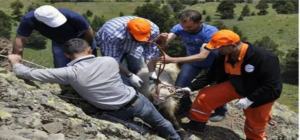 Gümüşhane’nin Torul ilçesinde üç gündür kayada mahsur kalan 2 keçi, uzman dağcıların 3 saat süren çalışmasıyla bulundukları yerden halatlarla kurtarıldı.