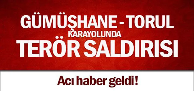 61SAAT HABER SERVİSİ - Gümüşhane’de bugün sabah saatlerinde terör olayı meydana geldi. Gümüşhane – Torul Karayolunda bugün sabah saatlerinde devriye görevine çıkan Jandarma aracına, bölgede pusu kuran PKK’lı teröristler tarafından ateş açıldı. Açılan ateşe Jandarma ekipleri anında karşılık verirken bölgede kısa süreli çatışma çıktı. Çıkan çatışmada 2 asker yaralandı. Takviye birliklerin bölgeye sevk edilmesinin ardından PKK’lı teröristler ormanlık araziden faydalanarak kaçtı. Yaralı 2 asker hastaneye kaldırılarak tedavi altına alınırken bölgede komando birliklerinin de katımıyla geniş çaplı operasyon başlatıldı. Bölgede operasyon sürerken, hastaneye kaldırılan askerlerimizden birinin şehit düştüğü bilgisi geldi.