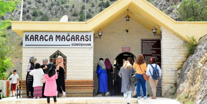 Kurban Bayramı'nı geçirmek üzere Gümüşhane'ye gelen yerli ve yabancı turistler, Doğu Karadeniz'in önemli turizm destinasyonları arasında yer alan Karaca Mağarası'nı ziyaret ediyor.