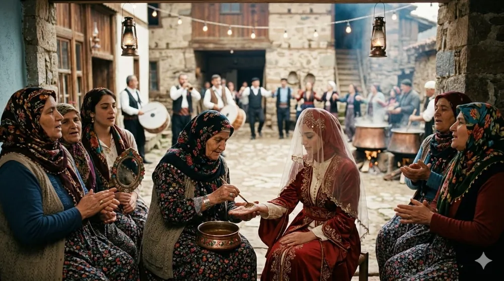 Eski köy düğünlerinin en duygusal anlarından biri kına geceleriydi. Köyün tecrübeli nineleri gelinin başına geçer, özel türküler eşliğinde kına yakardı. O anlar hem hüzünlü hem de anlam dolu olurdu. Gelinin eline yakılan kına, yeni hayatın bereketini ve mutluluğunu simgelerdi. Ancak bugün köylerde yaşlılar hüzünle şunu söylüyor: