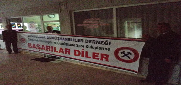 Zonguldak Gümüşhaneliler Derneği Türkiye Kupası eleme müsabakasında karşı karşıya gelecek olan Zonguldak Kömürspor Gümüşhanspor karşılaşması öncesi anlamlı bir eylem gerçekleştirerek müsabaka öncesi hazırladıkları pankartla her iki kulübe başarı dileklerini sundular.