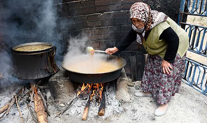 Odun ateşinde kaynatılarak kıvamına getirilir.