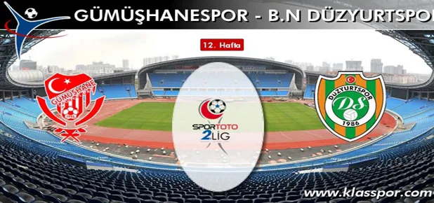 TFF 2.Lig Kırmızı Grup 12. haftasında Gümüşhanespor ile BN Düzyurtspor Gümüşhane Yenişehir Stadı'nda bir araya geldi.Karşılaşmayı BN Düzyurtspor 1-0 kazandı