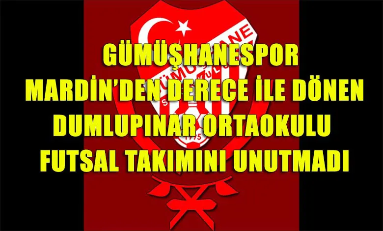 Gümüşhanespor, Mardin'de düzenlenen Ortaokullararası Türkiye Futsal Şampiyonasında dördüncülük elde eden Dumlupınar Ortaokulu Antrenör, öğrenci, okul yönetimi ve teknik ekibi kutladı. Kulübün sosyal medya hesabından yapılan açıklama da; ''Mardin’de düzenlenen Ortaokullar arası Türkiye Futsal Şampiyonasında;