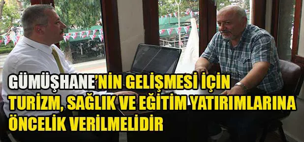‘Karaca Mağarasını günübirlik 40 bin kişi ziyaret ediyorsa bunun en az 5 bin kişisineGümüşhane’de konaklama imkânı sağlayamıyorsanız ortada çok büyük bir eksiklik ve şehir için büyük bir kayıp olduğu açıkça ortadadır. Dolayısıyla turizm adına konaklama tesislerinin Gümüşhane’ye bir an önce kazandırılması gerekir. Ulaşımda Trabzon - Gümüşhane arasında büyük bir kolaylık sağlanmıştır, ulaşım süresi kısaltılmıştır, bu durum turizm adına büyük bir kazançtır. Bunun geleceğini devam ettirmek gerekir. Bu gerçekler ortada iken kalkıp organize sanayi bölgesi kurmak şehir için bir külfet olur ve bir de şehre çok büyük katkısı olmaz. Ancak turizm (yayla) ve eğitim projelerinin tam anlamıyla şehirde olgunlaştığı zaman Gümüşhane’nin çehresinin değişeceğine inananlardanım.’