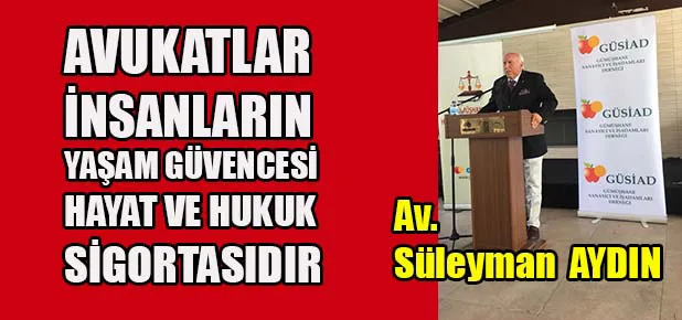 Gümüşhane Sanayici ve İşadamları Derneği (GÜSİAD) YK Üyesi, Gümüşhaneli Hukukçular Platformu Başkanı Av. Süleyman Aydın derneğin hukukçuları ağırladığı sabah kahvaltılı program da tarihe geçecek bir konuşma yaptı. Oldukça seçkin cümlelerle hazırlanmış konuşmasını meslektaşlarına ve programa katılan saygın isimlere yapan Aydın, dernek ve hukuk cümlesinin anlamını kalın çizgilerle çizdi.