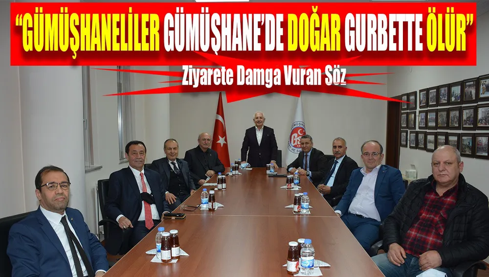 Değerli Büyüğümüz ve Bakanımız Sayın Oltan Sungurlu Ağabeyimizin bir söz vardı ‘Gümüşhaneliler Gümüşhane’de doğar Gurbette ölür’ tabi bu cümleyi söylerken şehrimizin insanının rızkını dışarda aramak zorunda olduğunu vurgulamıştır. Sizler bulunduğunuz bölgelerde kendi adınıza önemli başarılara imza atmış ve birer başarı hikayesi yazdınız. Âmâ bunun ötesinde ki asıl başarı hikayesini memleketinizi unutmayarak yazıyorsunuz. Her yıl en az birkaç kez olsun şehrimize gerçekleştirmiş olduğunuz bu önemli ziyaretlerde yazılan bu başarı hikayesinin en güzel parçaları. Bizler şehrimize verdiğiniz değerin farkındayız. Birlik ve beraberlik içerisinde hareket ederek ilimize neler yapabiliriz konusunda fikirler oluşturmak ve beyin jimnastiği yapmak bizler için önemli ihtiyaçlar. Bu tür birliktelikler şehrimize önemli değerler katacaktır. Karşılıklı fikirlerin çatışmasından güzel ve doğru fikirler elde edilir. Ben tekrar hem ilimize hem de odamıza yapmış olduğunuz bu değerli ziyaret için hepinize ayrı ayrı çok teşekkür ediyorum. GTSO olarak üzerimize düşen tüm görevlere 7/24 hazır olduğumuzu ifade ederek, bu ziyaretin ve yapılan toplantıların şehrimize hayırlı olmasını diliyorum ’ifadelerini kullandı.