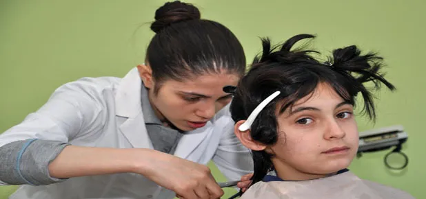 Kız Teknik ve Meslek Lisesi Güzellik ve Saç Bakımı Hizmetleri Bölümü öğrencileri, sosyal sorumluluk projesi kapsamında yatılı okullarda öğrenim gören kız öğrencilerin saç bakımını yapıyor.