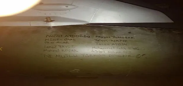 TÜRK Silah Kuvvetleri'nin PKK ve IŞİD hedeflerine düzenlediği hava harekatlarında kullanılan füzelere terör saldırılarında şehit olan güvenlik güçlerinin isimleri yazıldı. Son olarak PKK hedeflerinin vurulduğu hava harekatında kulanılan füzeye şehit olan Necdet Aydoğdu, Müsellim Ünal, Okan Acar, İsmail Yavuz, Mehmet Koçak, Feyyaz Yumuşak, Yalçın Nane, Tansu Aydın,