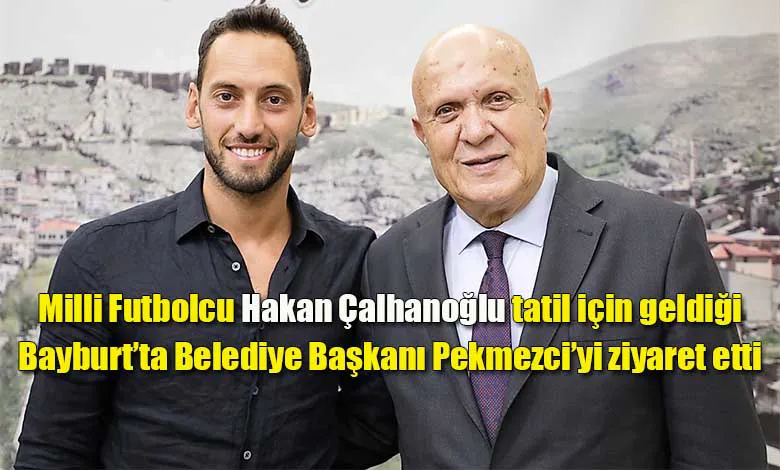 İtalya Birinci Futbol Ligi (Serie A) takımlarından İnter'de forma giyen milli oyuncu Çalhanoğlu’nu makamında ağırlayan Bayburt Belediye Başkanı Hükmü Pekmezci, “Millî gururumuz, dünyaca ünlü futbolcu hemşehrimizi şehrimizde ağırlamaktan büyük bir mutluluk duyuyoruz. Kendisiyle her zaman gurur duyuyoruz. Başarılarının devamını temenni ediyoruz” dedi.