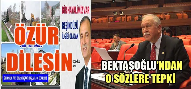 CHP Giresun Milletvekili Milli Eğitim, Kültür, Gençlik ve Spor Komisyonu üyesi Bülent Bektaşoğlu, Beşikdüzü Köy Enstitüsü’nün binalarını ‘ahır’ diye nitelendiren AKP’li ilçe belediye başkanı Orhan Bıçakçıoğlu’na TBMM’de yaptığı konuşmayla tepki gösterdi. İfadeyi ‘okulda okuyanların hatırasına saygısızlık’ olarak nitelendiren Bektaşoğlu, ”bu ifadeyi o enstitüde okuyan bir babanın evladı olarak şiddetle kınıyor, kendisi de eğitimci olan başkanı özür dilemeye çağırıyorum” dedi.