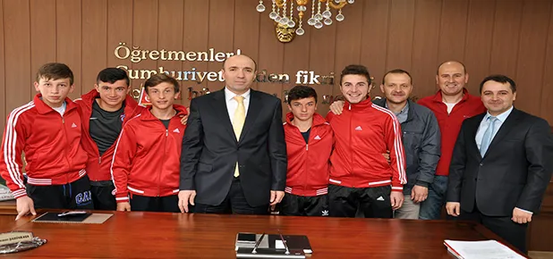 Trabzon Düzköy Anadolu Lisesi Futsal Takımı Oyuncuları İl Milli Eğitim Müdürü Muhammet Şahinkaya'yı Ziyaret Etti