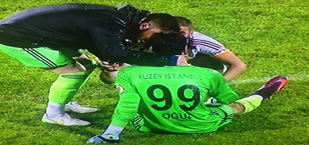 İkinci yarının son bölümünde gelişen Trabzonspor atağında sakatlanan Oğuz son dakikalarda büyük acı çekti.