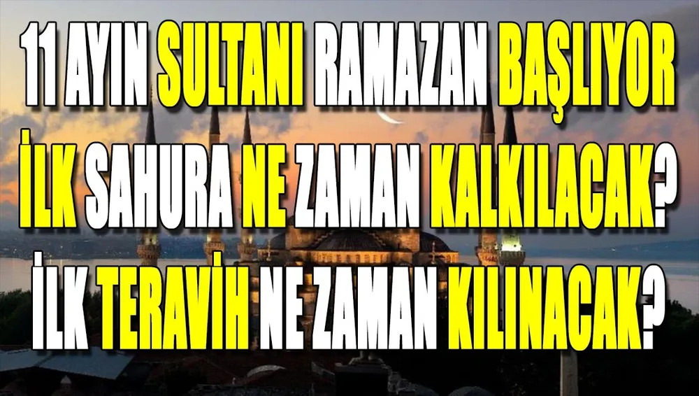 GÜMÜŞHANE / GÜNDOĞUMU Onbir Ayın Sultanı Ramazan, 13 Nisan Salı günü başlıyor. İlk teravih namazı bu akşam kılınacak. İlk sahura 13 Nisan Salı günü kalkılacak. Diyanet İşleri Başkanlığı’nın aldığı karara göre, teravih namazı camilerde değil evlerde kılınacak . Bin aydan daha hayırlı Kadir Gecesi ise 8 Mayıs 2021 Çarşamba günü idrak edilecek.
