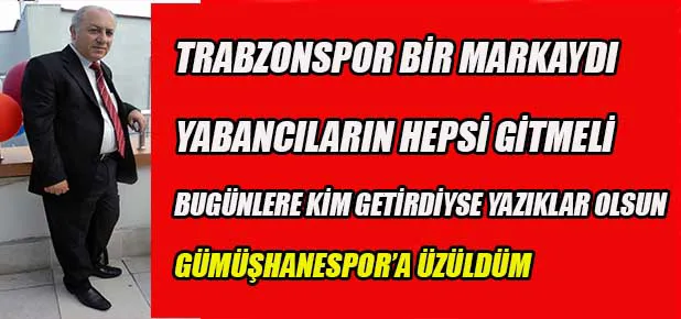 ‘Trabzonspor’u bu hale kim getirdiyse, kimler getirdiyse yazıklar olsun. Bu kulüp, camia bu günleri yaşamayı hak edecek ne yaptı? Trabzonspor bir markaydı kim ne derse desin bir değer di, ne hale getirildi. Söylenecek bi şey yok diyeceğim tek şey bu takımdaki tüm yabancıları bir an önce kapı dışarı etmektir. Her zaman söylüyorum; TS’u ayağa kaldıracak ruh kendi öz değerleri ve mücadelesidir, gerisi yalandır’.