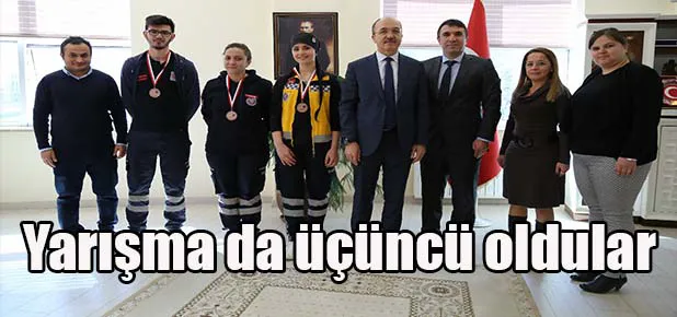 Öğrencilerden Ayşenur Öndeş, Muhammed Talha Gürses, Ebru Şahan ve Ali Öztürk, 16 Üniversitenin ve 23 grubun bulunduğu, I. Uluslararası Öğrenci Paramedik Rallisi'nde yarıştılar. I. Uluslararası Öğrenci Paramedik Rallisi kapsamında rakipleri ile kıyasıya mücadele eden Şiran Sağlık Hizmetleri Meslek Yüksekokulu İlk ve Acil Yardım Programı öğrencileri, 9 etap olarak düzenlenen Vaka Yarışmalarının Temel Yaşam Desteği Etabında “Üçüncülük” ödülünü almaya hak kazanarak, Üniversiteyi ve okulu en iyi şekilde temsil ettiler. Ödül kazanan öğrencilerimiz, Rektör Prof. Dr. Halil İbrahim Zeybek’i ziyaret etti. Rektörlük makamında gerçekleşen görüşmede İlk ve Acil Yardım Programı öğrencileri Ayşenur Öndeş, Muhammed Talha Gürses, Ebru Şahan ve Ali Öztürk yarışmaya hazırlık süreçleri hakkında Üniversite Rektörü Prof. Dr. Halil İbrahim Zeybek’e bilgi verdiler.