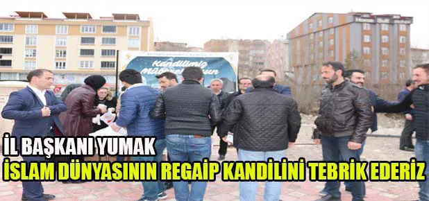 İl Başkanı Yumak burada üniversite öğrencilerine ve hemşehrilerine kandil simidi ikram ederken ‘İslam dünyasının Regaip Kandilini tebrik ediyoruz, mübarek olsun’.dedi.