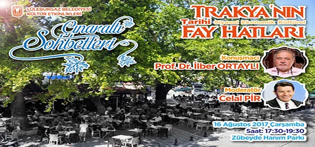Lüleburgaz Belediyesi kültür etkinlikleri kapsamında birincisi gerçekleştirilen ‘Trakya’nın Tarihi, Siyasal, Ekonomik ve Kültürel Fay Hatları” programına katılan Prof. Dr. İlber Ortaylı, haber spikeri Celal Pir’in moderatörlüğünde halkla sohbet etti.