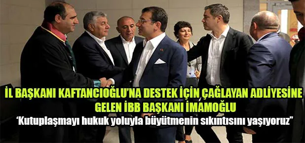 İmamoğlu, adliyeden ayrılırken yaptığı kısa açıklamada, “Bugün Sayın Kaftancıoğlu’nun, İl Başkanımızın, yol arkadaşımın duruşması var. Elbette hukuka uygun olmayan bir seçim sonrası oluşan atmosfer nedeniyle ortaya koyulmuş bir soruşturmanın karşılığını yaşıyoruz. Ülkeyi bu tür ortamlarla germenin ya da insanlar arası kutuplaşmayı bir vesile ile hele hele hukuk yoluyla büyütmenin sıkıntısını yaşıyoruz. Umuyorum yargı mercileri, yargıçlar, hakimler ülkeme bu sıkıntıyı yaşatmaya bir son verir. Çünkü ülkenin normalleşmesini diliyoruz. Ülkenin gerçek sorunlarıyla uğraşılmasını diliyoruz. Canan Kaftancıoğlu’nun, İl Başkanımızın, yol arkadaşımızın her zaman yanındayız” ifadelerini kullandı.