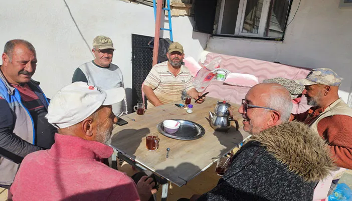 Tarlada, bahçede, bağda imeceyle yapılan ortak çalışmaların ardından bir araya gelen Gödül köylüleri, sohbetin sıcaklığında dostluğu ve dayanışmayı pekiştirdiler.