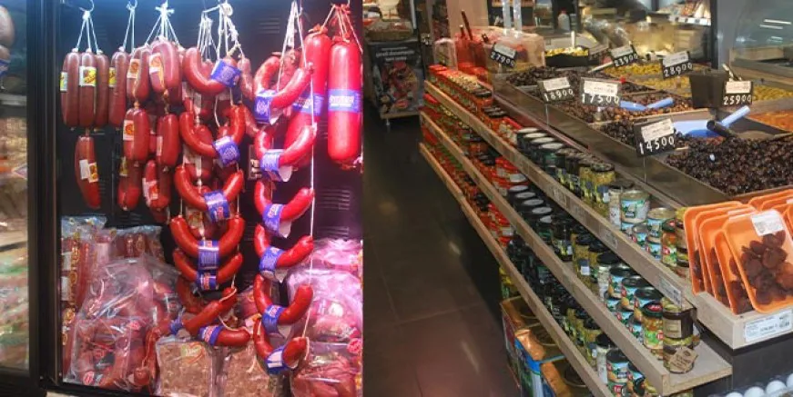 Şarküteri dükkanını işleten işçinin ucuzladı, indirim var söylemine karşın raflardaki ve tezgahtaki sucuğa, salama, peynire, zeytine, süte, tereyağa, helvaya, yumurtaya daha birçok şarküteri ürününe yaklaşılacak gibi olmadığını görüldü.