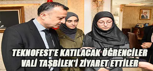 17 - 22 Eylül tarihleri arasında İstanbul Atatürk Havalimanı’nda yapılacak olan TEKNOFEST’de "İnsanlık Yararına Teknoloji" yarışmasında final sunumu yapmaya hak kazanan öğrenciler, Vali Kamuran Taşbilek’i makamında ziyaret ettiler.