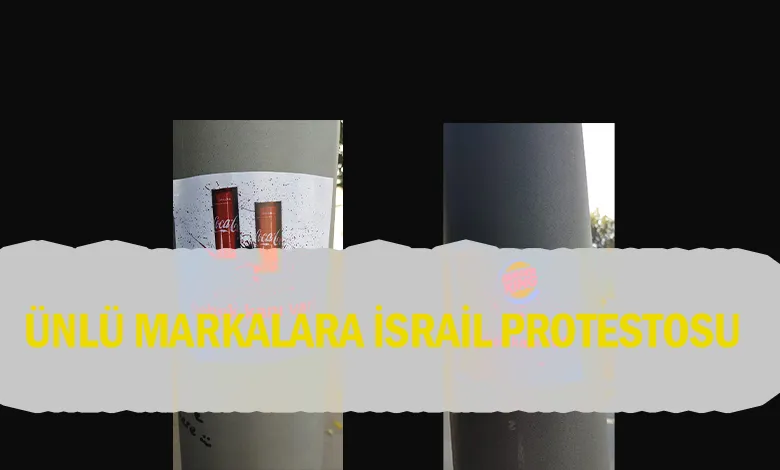 Yurdun pek çok bölgesinde İsrail’e dönük protestolar çeşitli eylemlerle artırılırken İstanbul’un en gözde ilçelerinden Üsküdar Kuzguncuk bölgesinde bir elektrik direğine yapıştırılan reklam çıkartmalarında yiyecek içecek sektörünün iki ünlü markası (Coca - Cola, Burger Kıng) protestolardan nasibini aldı.