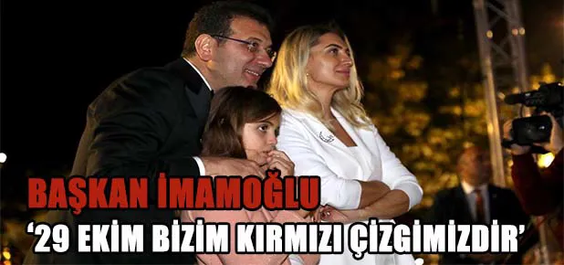 Cumhuriyete sahip çıkmanın, cumhuriyeti demokrasiyle bütünleştirmek demektir olduğunu vurgulayan İmamoğlu, sözlerini, “İkisi bir arada çok güzeldir. O yüzden biz, cumhuriyeti ve demokrasiyi cesaretle savunuruz. Onun için, ‘Yaşasın Cumhuriyet, yaşasın demokrasi’ diyoruz. O yüzden bu büyük millet cumhuriyet ve demokrasi deyince bir olur, bütün olur. Biz biliyoruz ki 29 Ekim bizim en büyük milli bayramımızdır. 29 Ekim kırmızı çizgimizdir. 29 Ekim, özgürlüğe ve eşitliğe inanan, birlikte ve kardeşçe yaşamayı hedefleyen bu milletin en değerli, en anlamlı, en milli günüdür. 29 Ekim bizim birliğimizin, kardeşliğimizin, hep birlikte var oluşumuzun bayramıdır. O yüzden bu yıl bir başka coşkuyla, umutla, hep birlikte, doya doya, coşa coşa kutluyoruz bayramımızı. O yüzden daha büyük bir saygıyla cumhuriyetimizin kurucusu Gazi Mustafa Kemal Atatürk başta olmak üzere, silah arkadaşları ve aziz şehitlerimizi rahmetle anıyoruz. Ruhları şad olsun. Kahraman gazilerimizi minnet ve şükranla anıyoruz. Bu bayramı güzelleştiren, anlam katan tüm sanatçı dostlarımıza, siz Cumhuriyet ve demokrasi sevdalılarına da çok teşekkür ediyorum. Hepinizi çok seviyoruz. Cumhuriyetimizin bayramı kutlu olsun. Hadi benden sonra hep birlikte tekrar edin. Ama avazınız çıktığınca yüksek sesle tekrar edin. İçinizden geldiğince ve inanarak tekrar edin. Yaşasın Cumhuriyet… Yaşasın demokrasi… Yaşasın Cumhuriyet… Yaşasın demokrasi… Yaşasın Cumhuriyet… Yaşasın demokrasi…” şeklinde noktaladı.