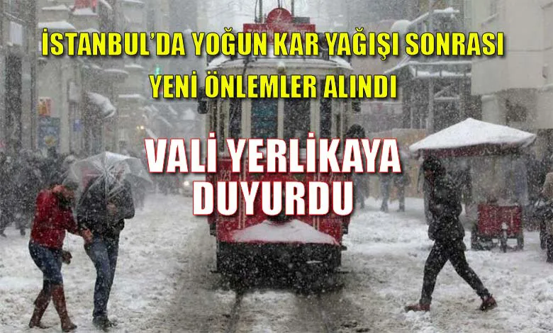 İstanbul Valisi Ali Yerlikaya, İstanbul'da alınan yeni kar tedbirlerini duyurdu. Yerlikaya, "Kamuda çalışanlar yarın idari izinli olacak" dedi. Ayrıca üniversitelerde bu hafta eğitime ara verildiği duyuruldu. Alınan tedbirlere göre, Trakya ve Anadolu'dan İstanbul'a girişlere kısıtlamaların süreceği belirtildi.